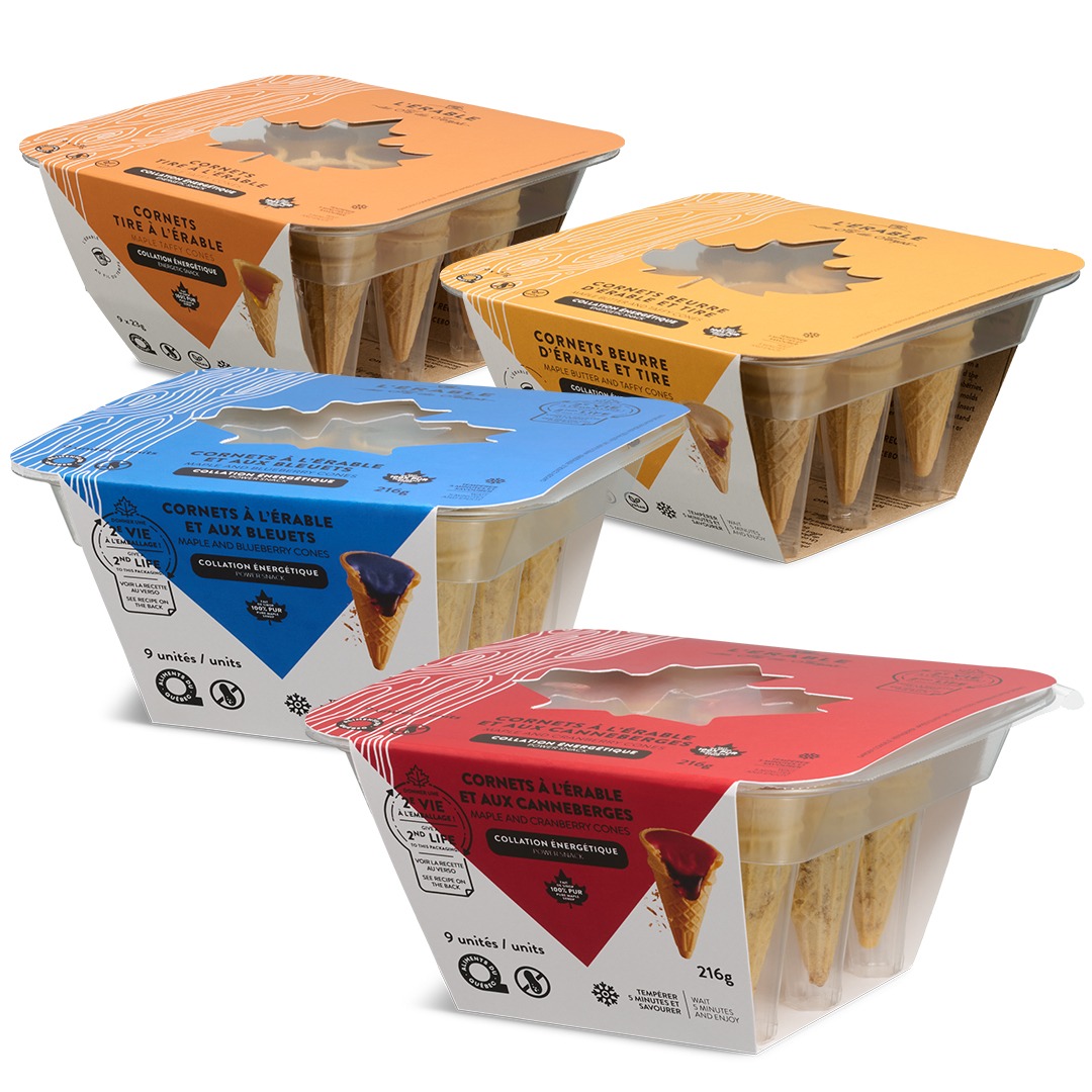 Et quoi dire de nos cornets qui ont fait la réputation de l'entreprise. Cette année, 2 nouveautés complètement qui feront titiller vos papilles: des cornets d'érable aux canneberges et d'érable aux bleuets! À goûter pendant le temps des fêtes!